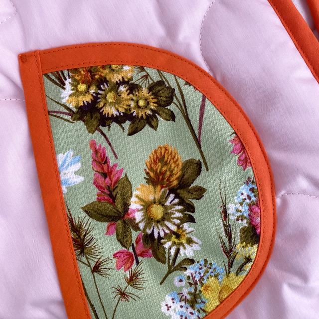 Les poches et manches ont été coupées dans un magnifique coupon de tissu de Boussac, à l'imprimé floral dessiné par Pascaline Villon. Toutes les étapes sont réalisées par mes soins dans mon atelier proche de Toulouse.