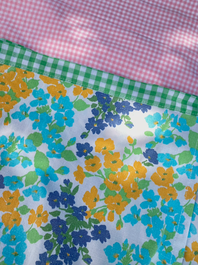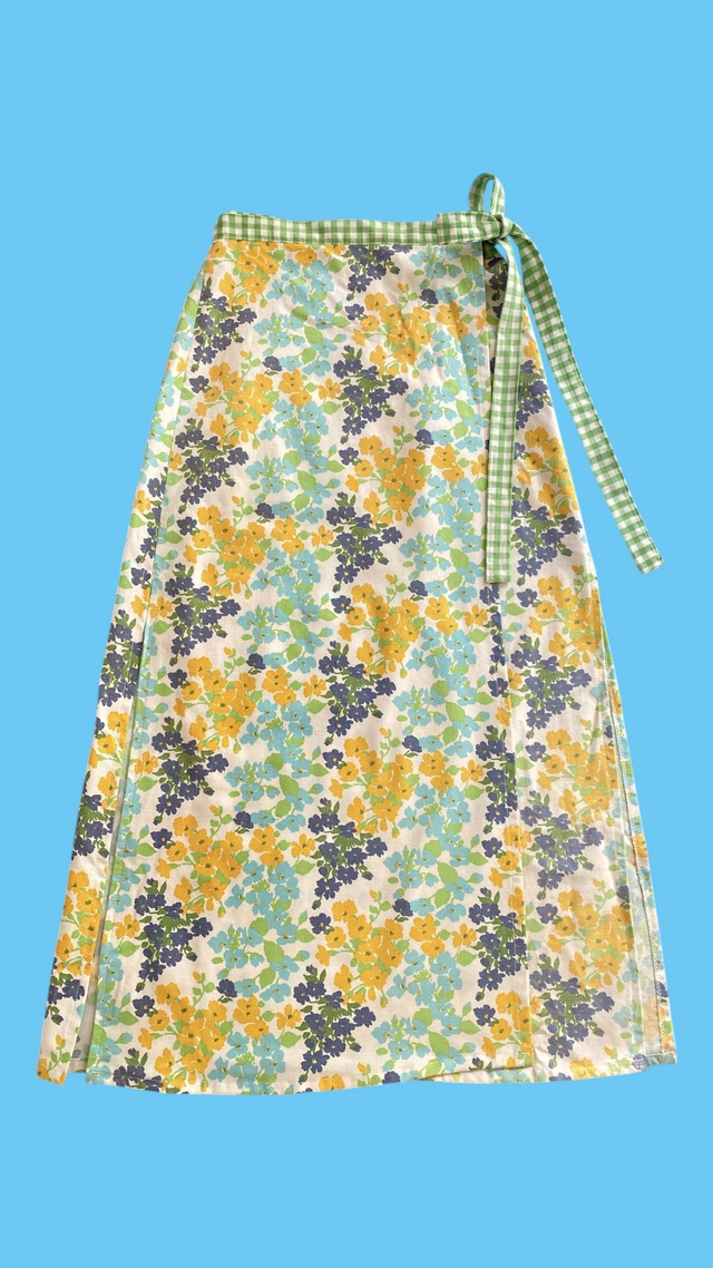 Cette jupe portefeuille est réalisée à partir d’anciens draps de qualité, chinés en boutiques solidaires et vide-greniers. Grâce à sa longueur longue/mi-longue, elle est idéale pour la mi-saison. Elle se porte aussi bien avec des sandales et un top léger qu’avec un sweat et des baskets pour un mood plus automnal. 🍂